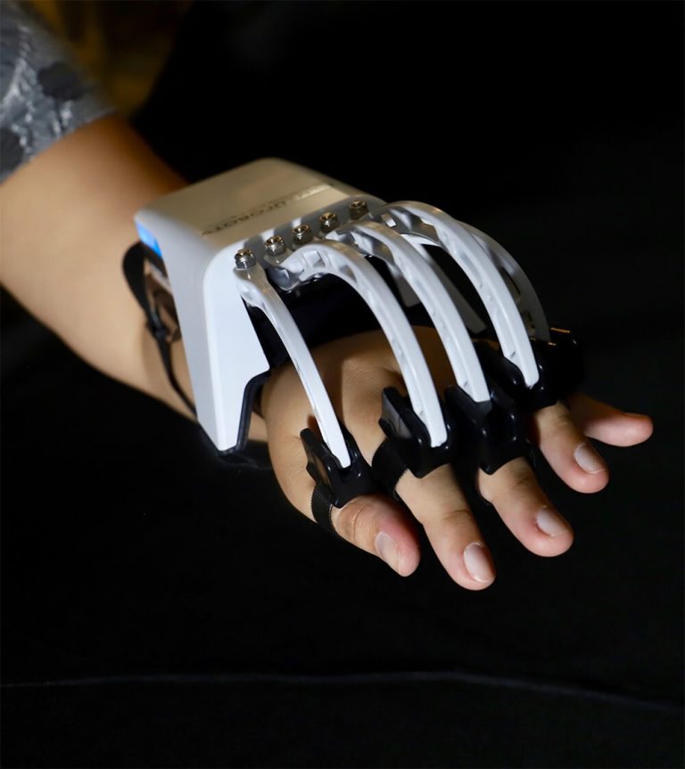 A solução é basicamente um exoesqueleto, uma espécie de luva robótica, que é controlada pelo cérebro. Na prática, o paciente mentaliza o movimento da mão – ação conhecida como “chamada imagética motora” – imagina como se estivesse movendo o membro afetado mesmo que não consiga movimentá-lo. A partir disso é gerada uma ativação cerebral que é captada com o sensor e processada com o software, ambos da Neurobots. Ao identificar essa ativação, o exoesqueleto se move, abre e fecha a mão do paciente novamente, o que permite a promoção da neuroplasticidade, que é capacidade que o próprio cérebro tem de se reorganizar para restabelecer aquelas funções que haviam sido perdidas.
